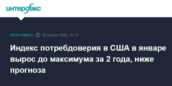 Индекс потребдоверия в США в январе вырос до максимума за 2 года, ниже прогноза