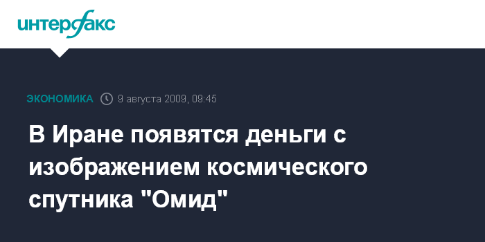 Москва. 9 августа. INTERFAX.RU - Центральный банк Ирана выпускает новую денежную купюру с изображением иранского космического спутника "Омид", выведенного на орбиту в феврале этого года.