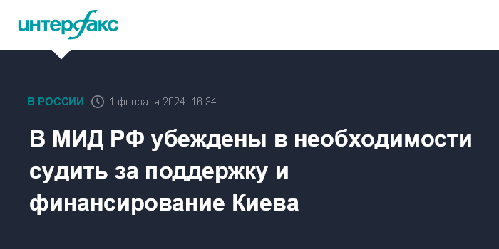 Москва. 1 февраля. INTERFAX.RU - В российском МИД заявили, что лица, поддерживающие и финансирующие Киев, должны быть преданы суду.
