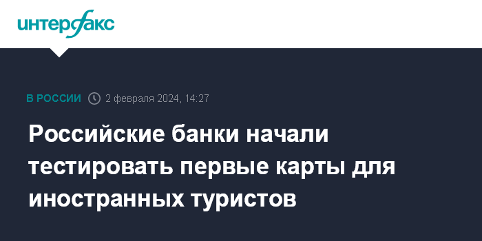 Москва. 2 февраля. INTERFAX.RU - Российские банки проводят тестирование первых карт для иностранных туристов, чтобы они могли проводить безналичные расчеты на территории РФ, сообщил в пятницу директор департамента многостороннего экономического сотрудничества и специальных проектов Минэкономразвития РФ Никита Кондратьев.
