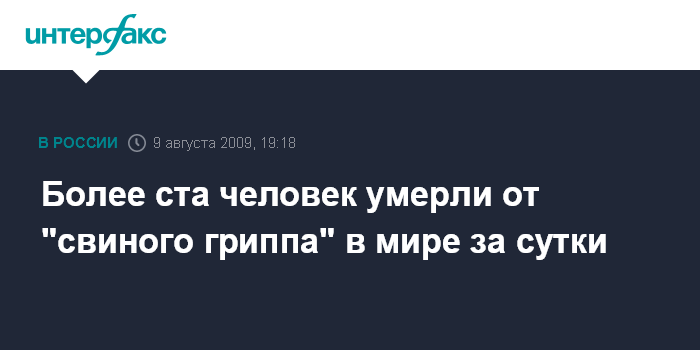 Москва. 9 августа. ИНТЕРФАКС - Общее количество лабораторно подтвержденных случаев заболеваний людей, вызванных вирусом А/H1N1 в мире составляет 206 987, включая 1 673 случаев с летальным исходом. Такие данные приводятся в воскресенье на сайте Роспотребнадзора.