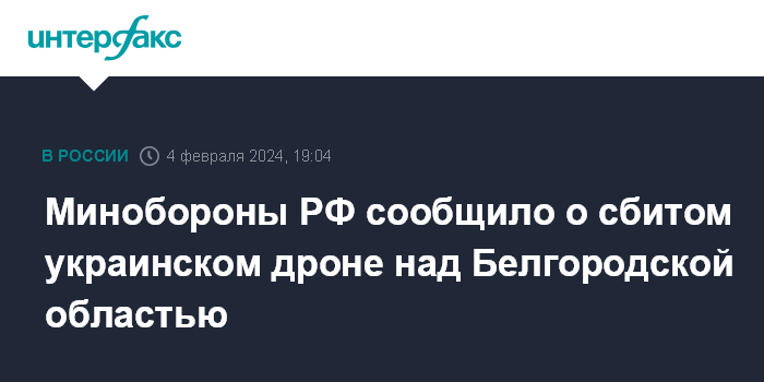 Минобороны РФ сообщило о сбитом украинском дроне над Белгородской областью