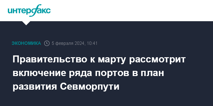 До 1 марта 2024 года поручено определить целесообразность включения в план развития Севморпути проектов по строительству глубоководного района порта Архангельск, реконструкции Беломорско-Балтийского канала, портов Кемь и Беломорск (Карелия), строительству глубоководного района Найба (Якутия).