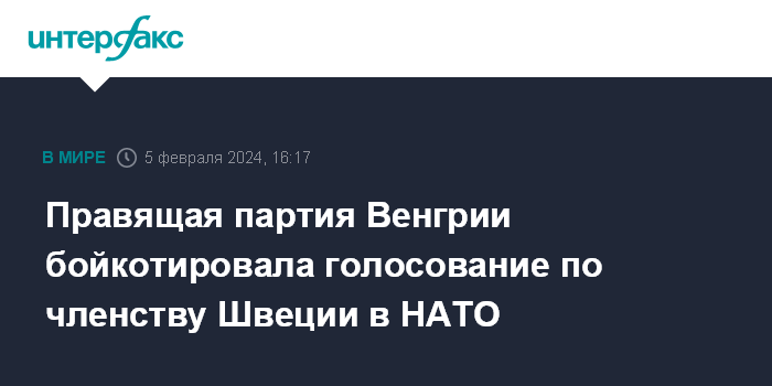 "Законодатели от партии премьера Виктора Орбана бойкотировали парламентскую сессию по вопросу членства Швеции в НАТО", - отмечает агентство.