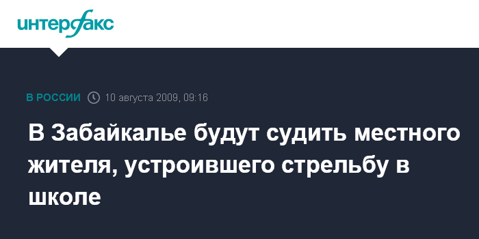 Москва. 10 августа. INTERFAX.RU - Прокуратура Забайкальского края утвердила и направила в Читинский областной суд уголовное дело для в отношении местного жителя Простакишина, устроившего стрельбу в средней школе N1 города Шилка и ранившего милиционера. Как сообщила в понедельник пресс-служба Забайкальского края, действия обвиняемого квалифицированы как незаконное приобретение, ношение огнестрельного оружия и боеприпасов, хулиганство, совершенное с применением огнестрельного оружия и посягательство на жизнь сотрудника правоохранительных органов. Наказание, предусмотренное за посягательство на жизнь сотрудника правоохранительного органа, может быть самым суровым и предусматривает пожизненное лишение свободы. Как ранее сообщалось, 20-летний житель города Шилка 13 марта начал стрельбу в средней школе N1 во время уроков.