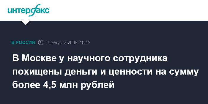 В Москве у научного сотрудника похищены деньги и ценности на сумму более 4,5 млн рублей