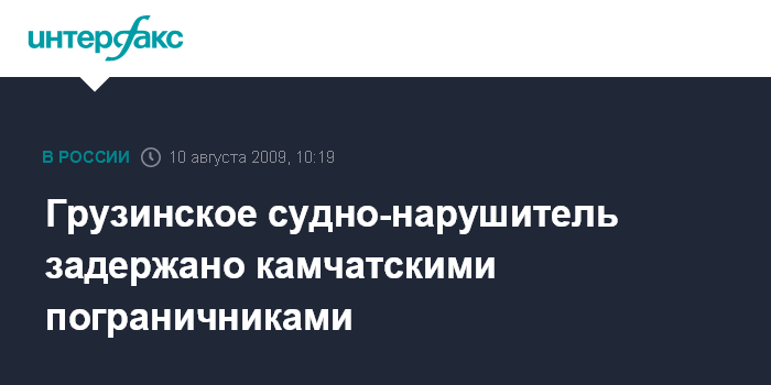 Москва. 10 августа. INTERFAX.RU - Только после предупредительной стрельбы камчатским пограничникам удалось задержать грузинское судно-нарушитель. Как сообщил в понедельник агентству "Интерфакс" представитель Северо-Восточного погрануправления береговой охраны ФСБ РФ, неопознанное судно было обнаружено в Беринговом море, в исключительной экономической зоне РФ. "На запросы патрульного судна "Аргал" СВПУ береговой охраны ФСБ России нарушитель не отзывался и предпринял попытку скрыться от преследования", - сказал собеседник агентства. По его данным, после двадцатичасовой погони в район преследования вылетел самолет Ан-72 авиации ФСБ России.