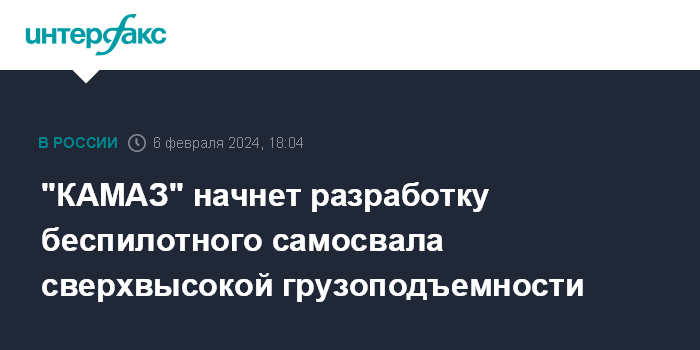 Москва. 6 февраля. INTERFAX.RU - ПАО "КАМАЗ" в феврале приступит к созданию беспилотного карьерного самосвала грузоподъемностью 220 тонн, сообщила пресс-служба автопроизводителя.
