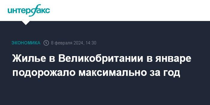 Москва. 8 февраля. INTERFAX.RU - В январе 2023 года цены на британскую жилую недвижимость увеличились на 2,5% в годовом выражении, максимальными темпами с января предыдущего года, сообщила консалтинговая компания Halifax.
