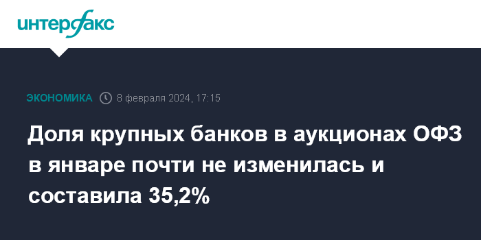 Доля крупных банков в аукционах ОФЗ в январе почти не изменилась и составила 35,2%