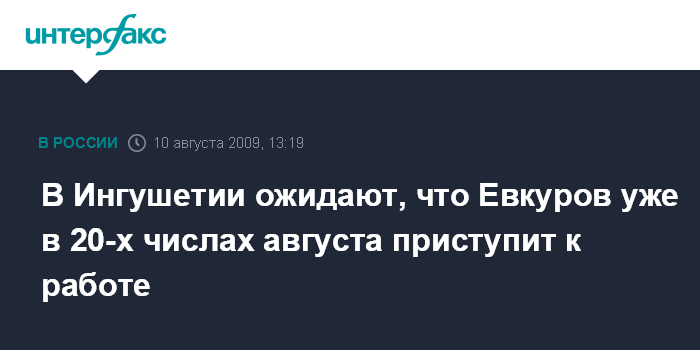 Ростов-на-Дону. 10 августа. INTERFAX.RU - Ожидается, что уже в 20-х числах августа выписавшийся из больницы в Москве после покушения на него президент Ингушетии Юнус-Бек Евкуров приступит к непосредственному выполнению своих обязанностей.