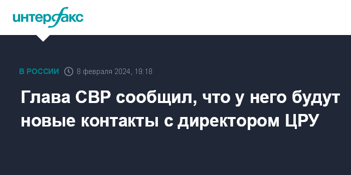 Глава СВР сообщил, что у него будут новые контакты с директором ЦРУ