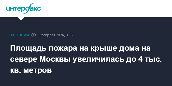 Площадь пожара на крыше дома на севере Москвы увеличилась до 4 тыс. кв. метров