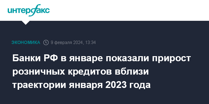 Банки РФ в январе показали прирост розничных кредитов вблизи траектории января 2023 года