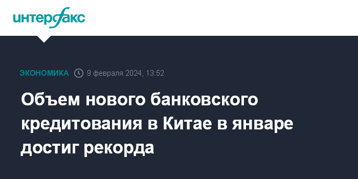 Объем нового банковского кредитования в Китае в январе достиг рекорда