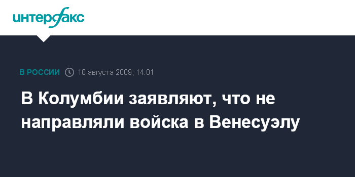 Каракас/Богота. 10 августа. INTERFAX.RU - Власти Колумбии объявили в понедельник, что не отправляли военных на территорию Венесуэлы. По сообщению колумбийского министерства иностранных дел, военное командование страны заверило, что войска, находящиеся в районе границы с Венесуэлой, не пересекали приграничную реку Ориноко.