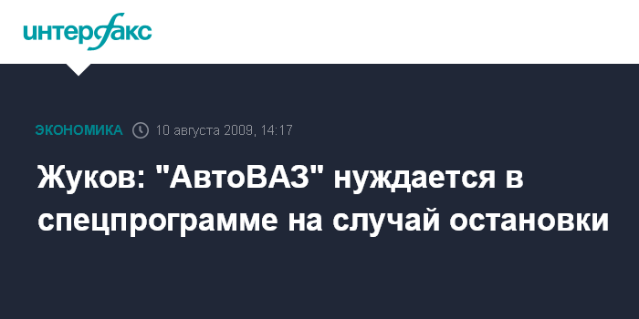 Жуков: "АвтоВАЗ" нуждается в спецпрограмме на случай остановки