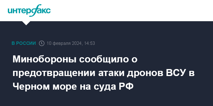 Москва. 10 февраля. INTERFAX.RU - Российские военные заявили, что предотвратили накануне атаку украинских морских дронов в Черном море на отечественные гражданские транспортные суда.