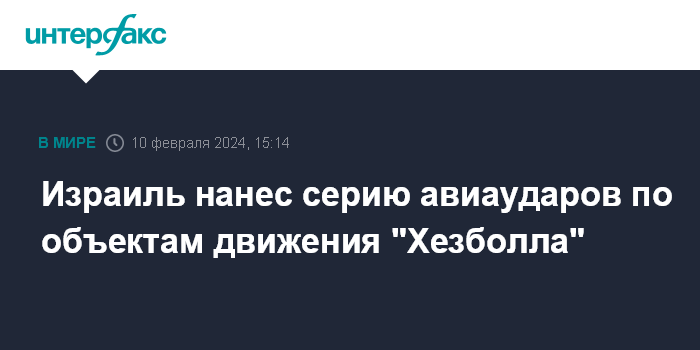 Москва. 10 февраля. INTERFAX.RU - Израильская авиация нанесла удары по объектам движения "Хезболла" на юге Ливана, информирует армия обороны Израиля (ЦАХАЛ).