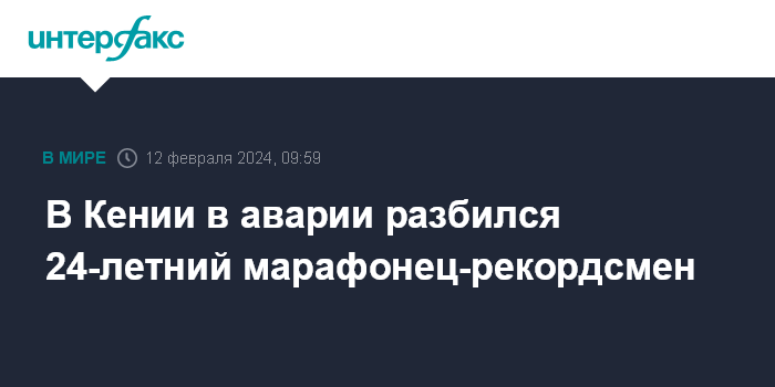 Москва. 12 февраля. INTERFAX.RU - В Кении в ДТП погиб 24-летний марафонец, мировой рекордсмен Келвин Киптум, сообщает CNN со ссылкой на отчет местной полиции.
