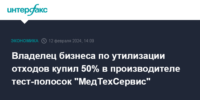 Владелец бизнеса по утилизации отходов купил 50% в производителе тест-полосок "МедТехСервис"