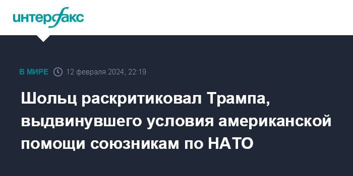 Шольц раскритиковал Трампа, выдвинувшего условия американской помощи союзникам по НАТО