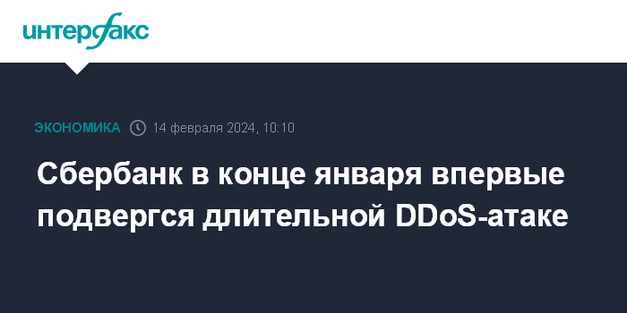 Москва. 14 февраля. INTERFAX.RU - Сбербанк в конце января впервые подвергся длительной DDoS-атаке, были атакованы все сервисы экосистемы, заявил зампред правления банка Станислав Кузнецов.