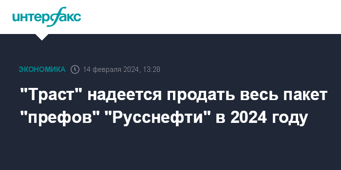 "Траст" надеется продать весь пакет "префов" "Русснефти" в 2024 году