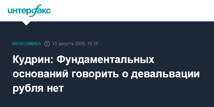 Кисловодск. 10 августа. INTERFAX.RU - Фундаментальных оснований говорить о девальвации рубля нет , заявил вице-премьер, министр финансов РФ Алексей Кудрин журналистам в понедельник в Кисловодске.