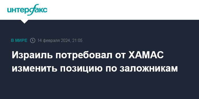 Израиль потребовал от ХАМАС изменить позицию по заложникам