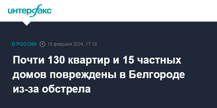 Москва. 15 февраля. INTERFAX.RU - Губернатор Белгородской области Вячеслав Гладков сообщил уточненную информацию о повреждениях жилого фонда и имущества в результате украинского обстрела областного центра и его пригорода.