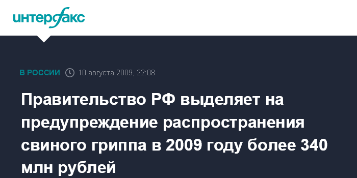Правительство РФ выделяет на предупреждение распространения свиного гриппа в 2009 году более 340 млн рублей