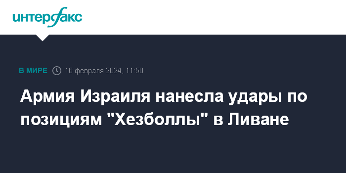 Москва. 16 февраля. INTERFAX.RU - Израильские военные в ночь на пятницу нанесли удар по военному объекту шиитского ливанского движения "Хезболла" на юге Ливана, сообщает газета The Times of Israel.