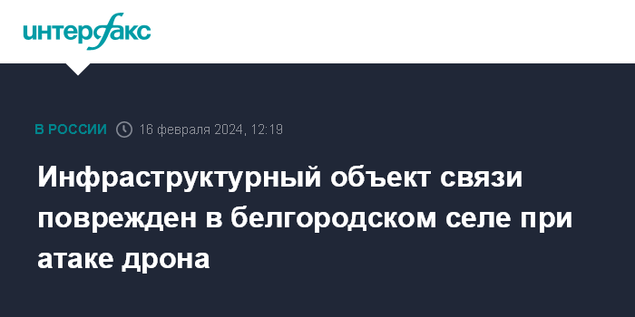 Москва. 16 февраля. INTERFAX.RU - Губернатор Белгородской области Вячеслав Гладков сообщил об украинском беспилотнике, атаковавшем село на территории Грайворонского городского округа.