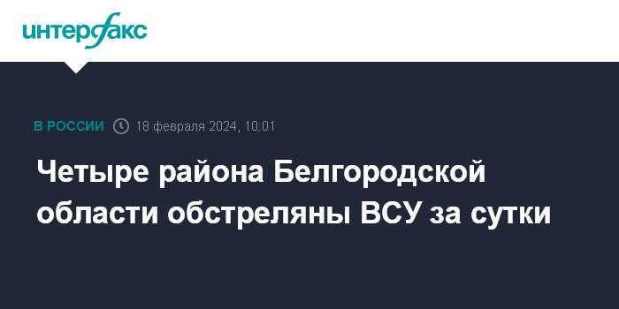 Москва. 18 февраля. INTERFAX.RU - Губернатор Белгородской области Вячеслав Гладков сообщил в воскресенье в телеграм-канале об ударах, нанесенных ВСУ по территории региона за минувшие сутки.