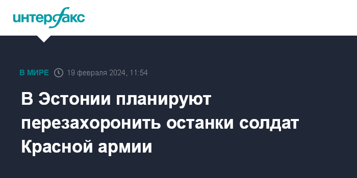 Москва. 19 февраля. INTERFAX.RU - В Эстонии на острове Сааремаа (Saaremaa) планируют провести раскопки на территории мемориального комплекса Техумарди (Tehumardi) и перезахоронить останки солдат Красной армии, а также демонтировать 90 могильных плит с пятиконечными звездами, но оставить мемориальный столб в форме меча.