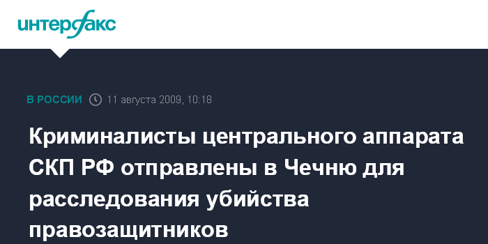 Криминалисты центрального аппарата СКП РФ отправлены в Чечню для расследования убийства правозащитников