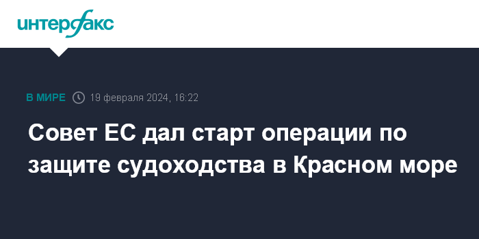 Москва. 19 февраля. INTERFAX.RU - Совет ЕС объявил о запуске своей военно-морской операции в Красном море EUNAVFOR ASPIDES.