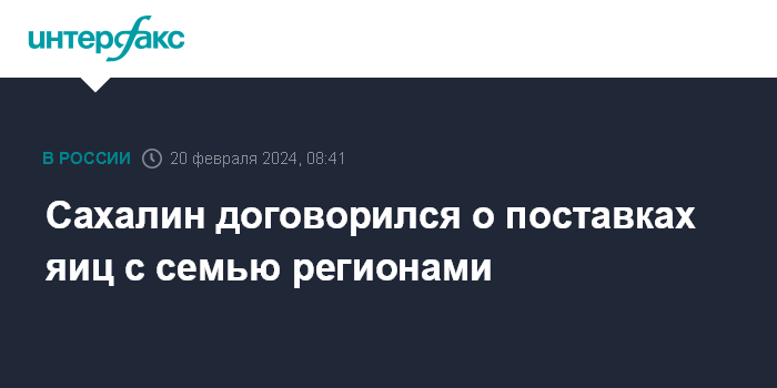 Москва. 20 февраля. INTERFAX.RU - На Сахалин в ближайшие дни должны доставить 3,7 млн яиц из семи российских регионов, с ними договорились о поставках, поскольку основной местный поставщик - птицефабрика "Островная" - остановил производство из-за массового падежа птицы, сообщает пресс-служба областного правительства.