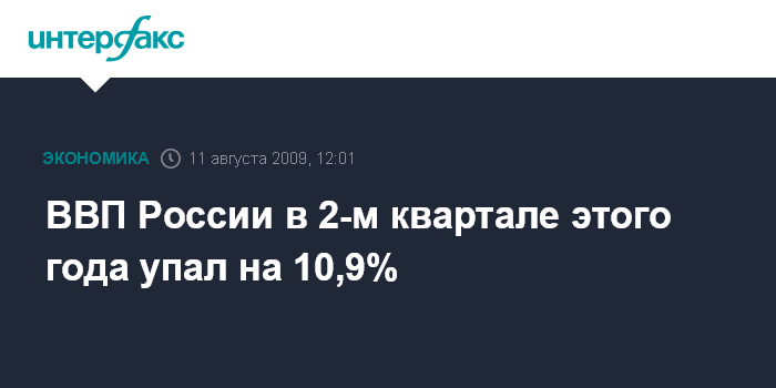 ВВП России в 2-м квартале этого года упал на 10,9%
