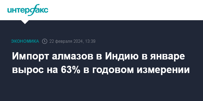 Москва. 22 февраля. INTERFAX.RU - В январе 2024 года Индия импортировала 11,8 млн карат алмазов, что на 63% больше, чем в январе 2023 года, следует из предварительных данных Совета по содействию экспорту драгоценных камней и ювелирных изделий Индии (Gem & Jewellery Export Promotion Council, GJEPC).