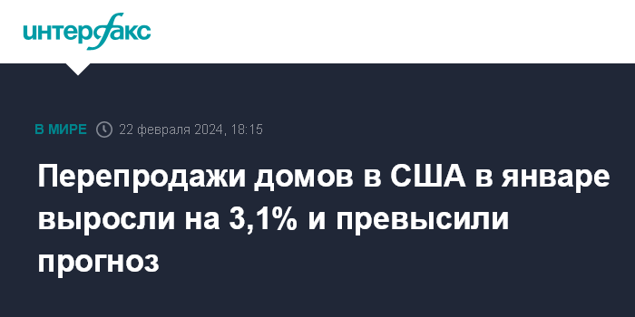 Перепродажи домов в США в январе выросли на 3,1% и превысили прогноз