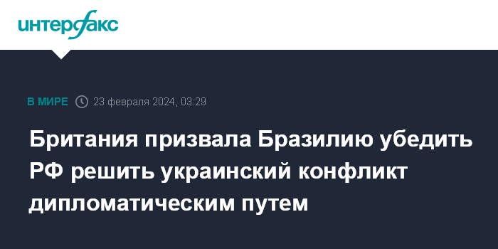 Британия призвала Бразилию убедить РФ решить украинский конфликт дипломатическим путем