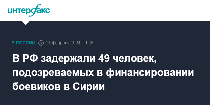 В РФ задержали 49 человек, подозреваемых в финансировании боевиков в Сирии