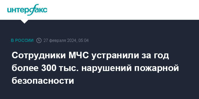 Сотрудники МЧС устранили за год более 300 тыс. нарушений пожарной безопасности