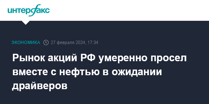Рынок акций РФ умеренно просел вместе с нефтью в ожидании драйверов