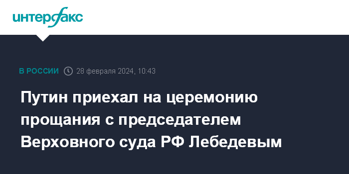 Путин приехал на церемонию прощания с председателем Верховного суда РФ Лебедевым