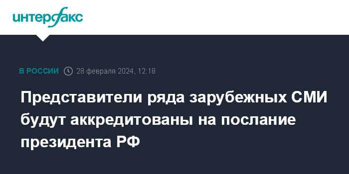 Представители ряда зарубежных СМИ будут аккредитованы на послание президента РФ