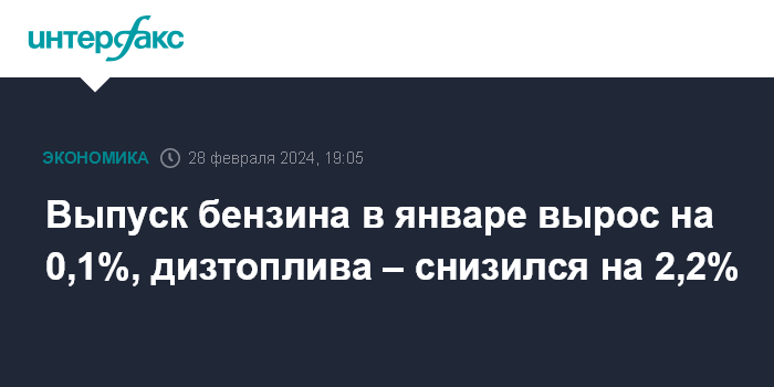 Выпуск бензина в январе вырос на 0,1%, дизтоплива – снизился на 2,2%