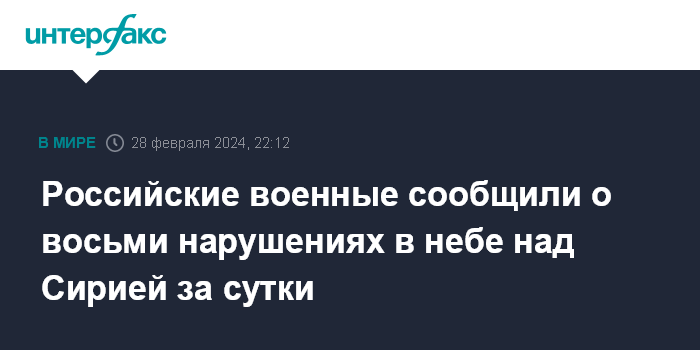 Российские военные сообщили о восьми нарушениях в небе над Сирией за сутки